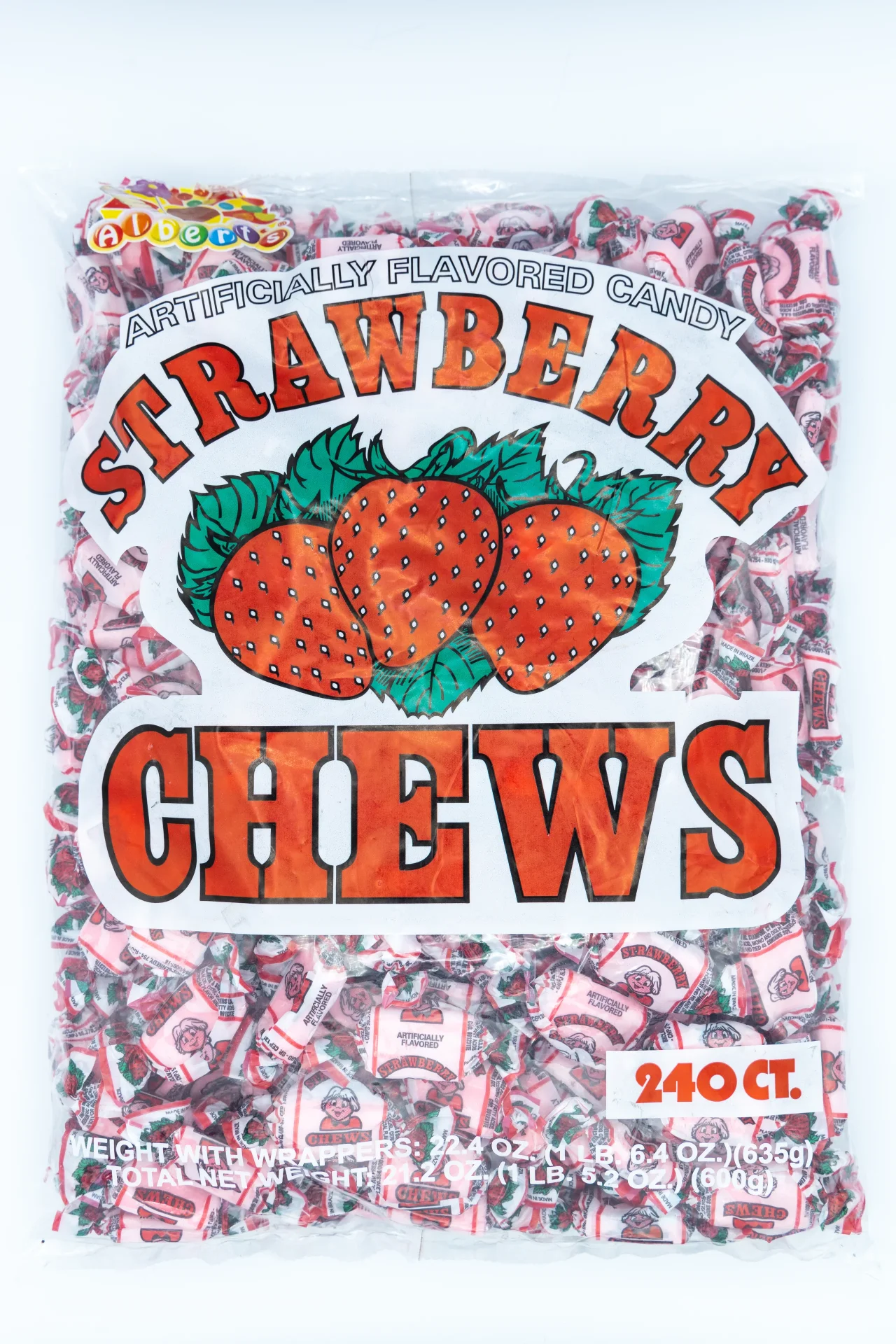 Albert’s 240ct Strawberry Chews are a sweet, fruity favorite that never goes out of style. Wrapped in bright red and packed with classic strawberry flavor, they’re perfect for everyday sales and candy mix-ins.