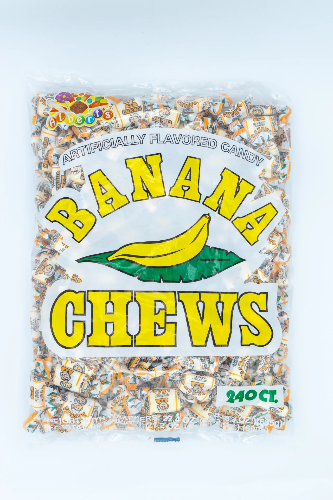 Albert’s 240ct Banana Chews are bursting with creamy, tropical banana flavor. Wrapped in bright yellow and offering a retro twist, these chewy candies are a standout addition for novelty candy lovers.