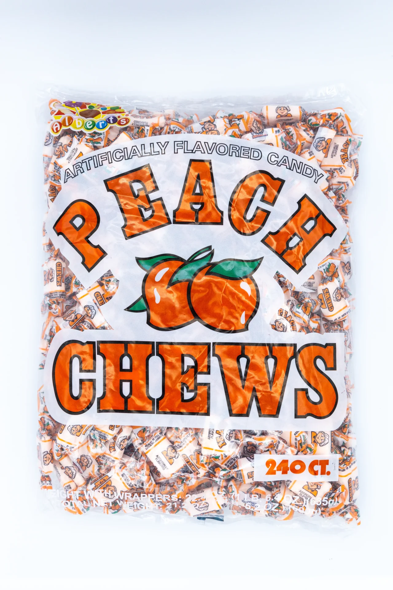 Albert’s 240ct Peach Chews are full of juicy, ripe peach flavor in every piece. These golden-hued chews are perfect for summer promotions or any candy section needing a smooth, mellow fruit option.