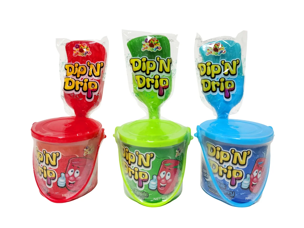 Be prepared to pucker up for our Dip ‘N’ Drip! This item consists of a tasty fruit flavored lollipop in the shape of a paintbrush and a two-part “paint” bucket. One side of the paint bucket contains Sour Gooey Ooze and the other side has Sour Powder. Kids will love dipping the fruity pop into just the ooze, just the powder or the sweetest treat of all… dipping into both!