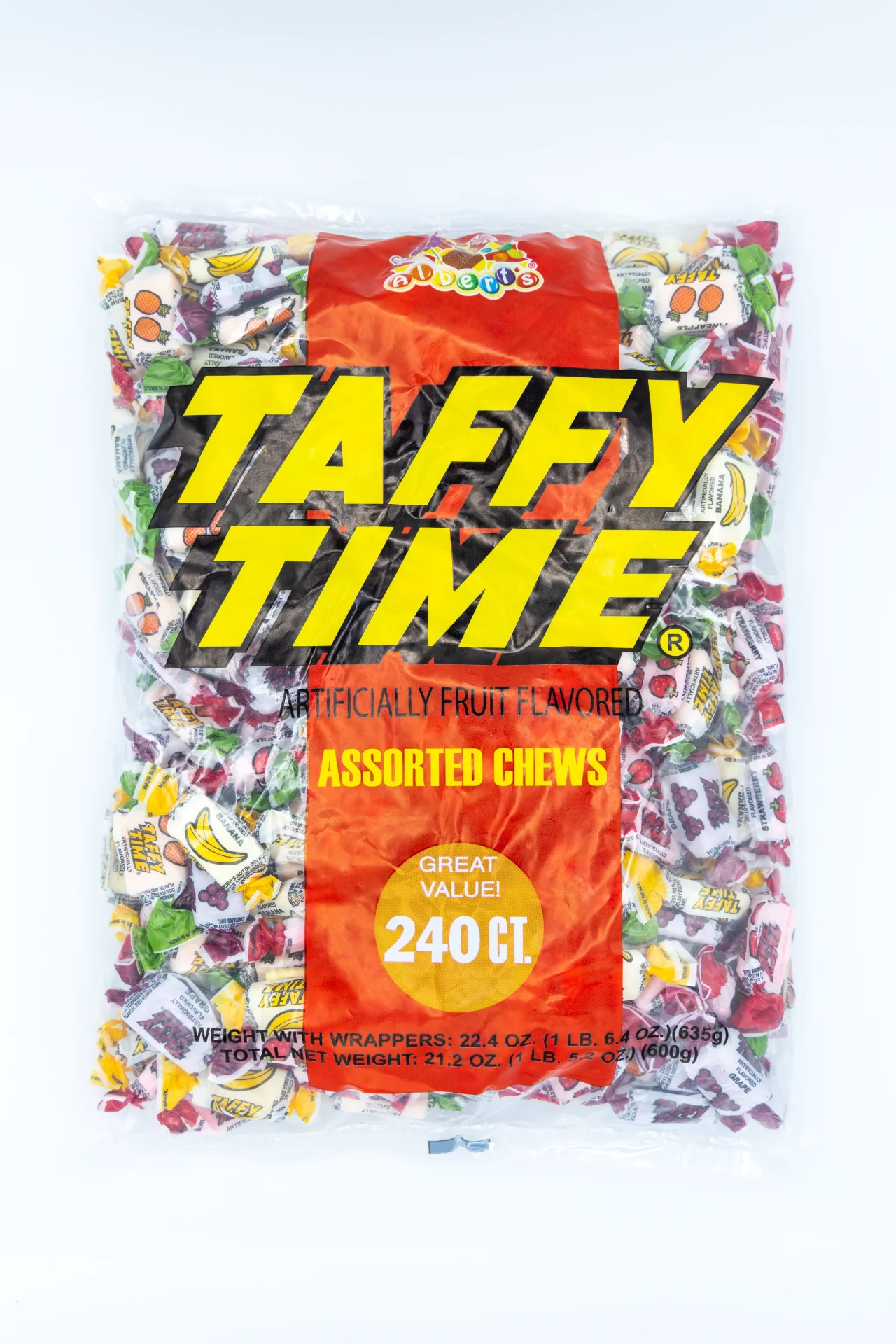 Albert’s 240ct Taffy Time Chews are soft, flavorful, and reminiscent of old-fashioned boardwalk taffy. With fun, fruity flavors and a chewy texture, they offer a nostalgic twist perfect for penny candy sections and novelty displays.